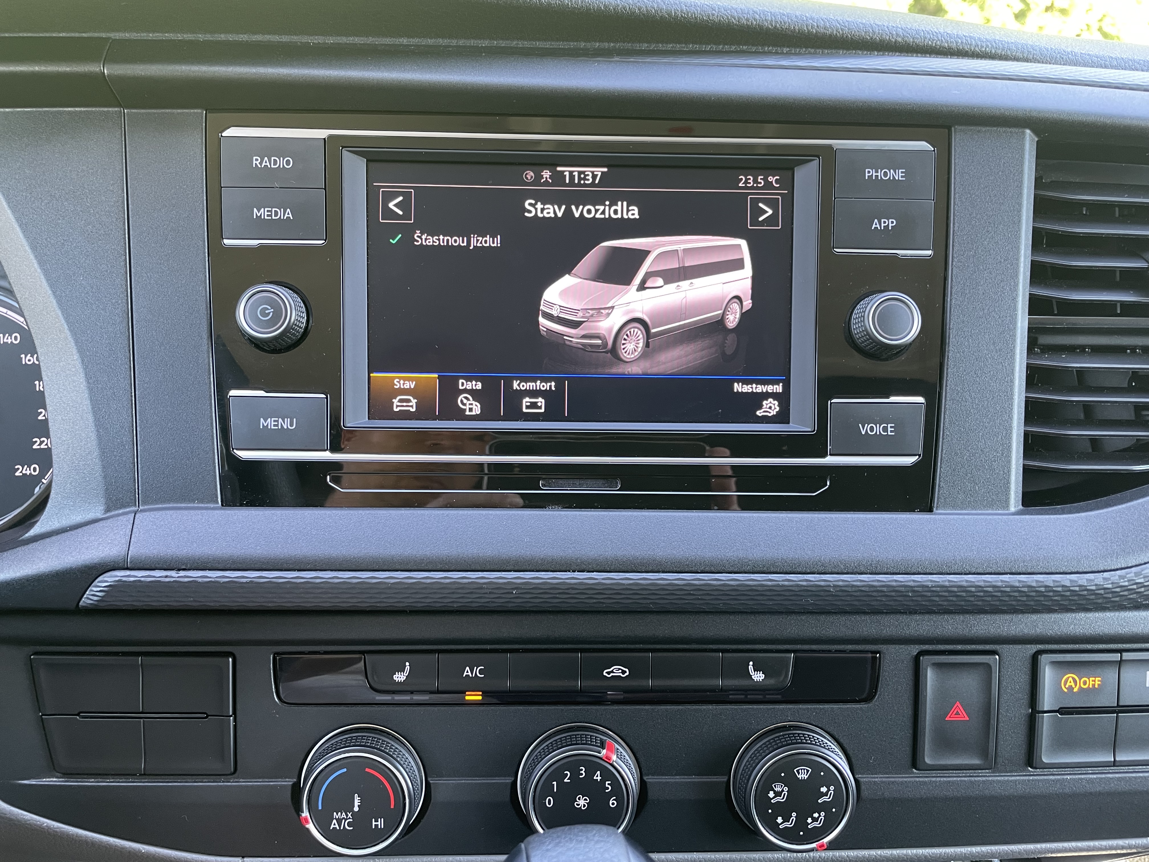 aut. převodovka, 2x airbag, ABS,stabilizace podvozku (ESP), protiprokluzový systém kol (ASR), aut. zabrzdění v kopci, tažné zařízení, posilovač řízení, man. klimatizace, nezávislé topení, nezávislé topení s čas. předehřívačem, tempomat, palubní počítač, parkovací senzory přední, parkovací senzory zadní, nastavitelný volant, deaktivace airbagu spolujezdce, hands free, Android Auto, Apple CarPlay, bluetooth, el. okna, střešní nosič, el. zrcátka, imobilizér, centrál dálkový, centrální zamykání, vyhřívaná sedadla, výškově nastavitelné sedadlo řidiče, senzor tlaku v pneumatikách, start-stop systém, otáčkoměr, USB, autorádio, venkovní teploměr, vyhřívaná zrcátka, boční posuvné dveře